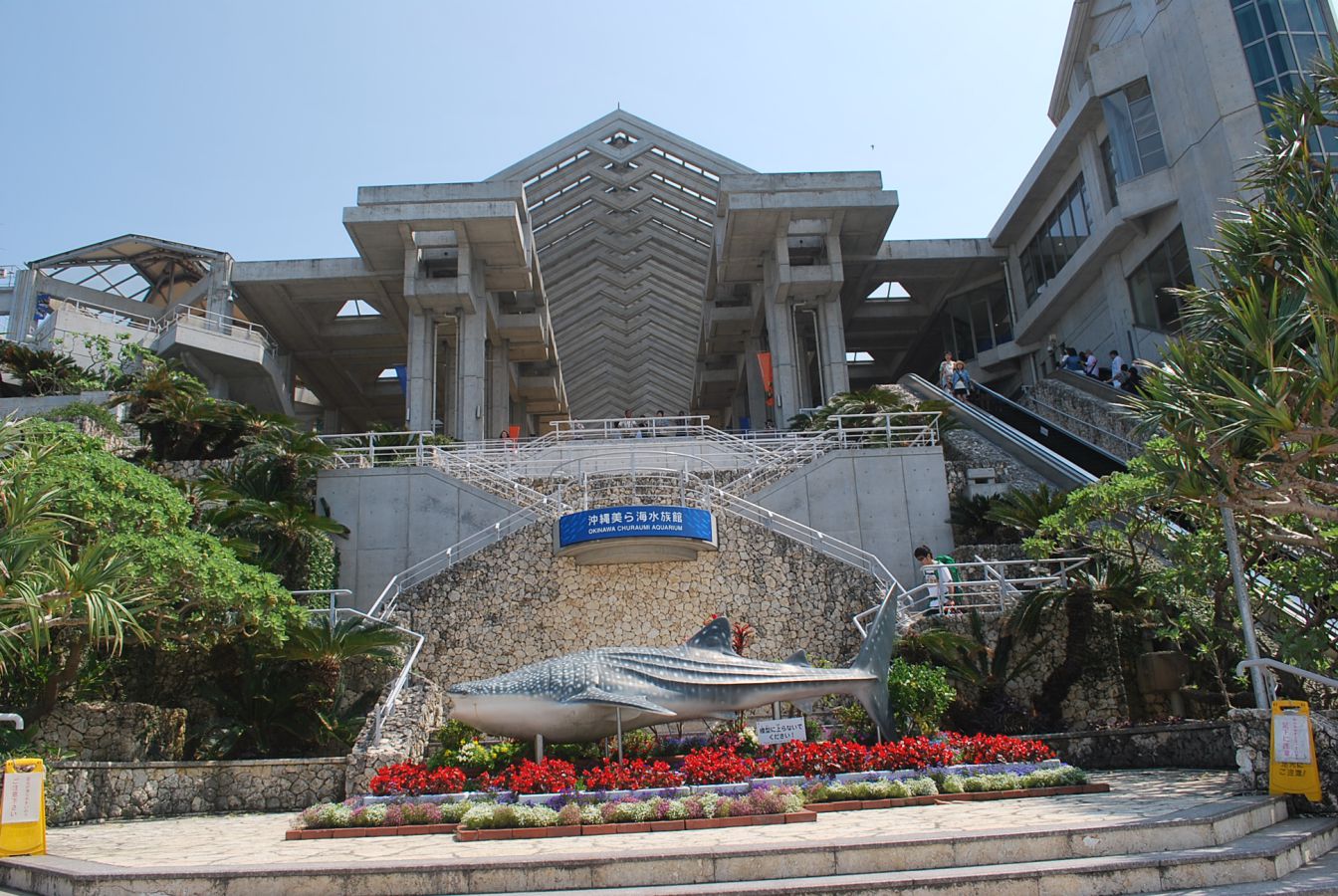 「沖縄美ら海水族館」は、沖縄本島北西部の本部半島備瀬崎近くにある国営沖縄記念公園・海洋博覧会地区(海洋博公園)の名称である。美ら海(ちゅらうみ)とは、沖縄の方言で「美しい」「清らか」な「海」という意味。 豊かな自然や歴史文化の体験をはじめ、イルカたちとのふれあいも楽しめる。海の浅瀬に住む魚やヒトデ、なまこを触れるふれあいコーナーも設置されている。 様々な展示も行っており、隣接施設として入場無料であるイルカのショーが楽しめる「オキちゃん劇場」や「ウミガメ館」「マナティー館」なども人気である。 ギネス記録を取得した7,500m3の世界最大級の大水槽『黒潮の海』が設置されており、総展示槽数は77槽。 沖縄記念公園・海洋博覧会地区の中に、植物を楽しめる「熱帯ドリームセンター」も開設されている。 |